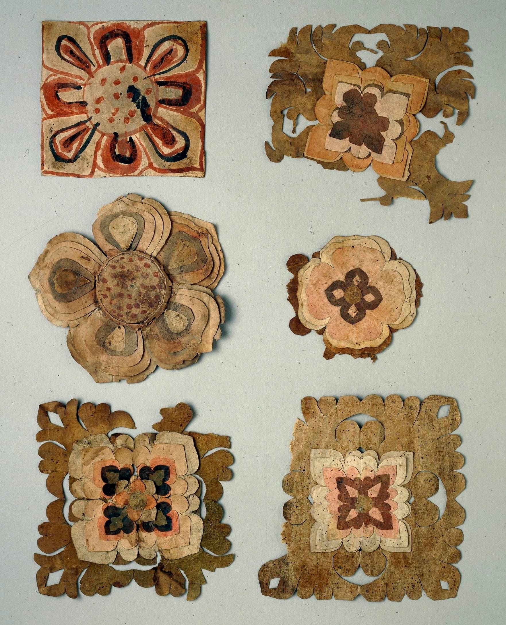 Some 50,000 documents, textiles, and other objects emerged from the cavern, which had been sealed up some time during the 11th century. Among these were a series of cut and folded paper flowers, several of which are part of The Stein Textile Collection, stored at the British Museum and the V&A in London.